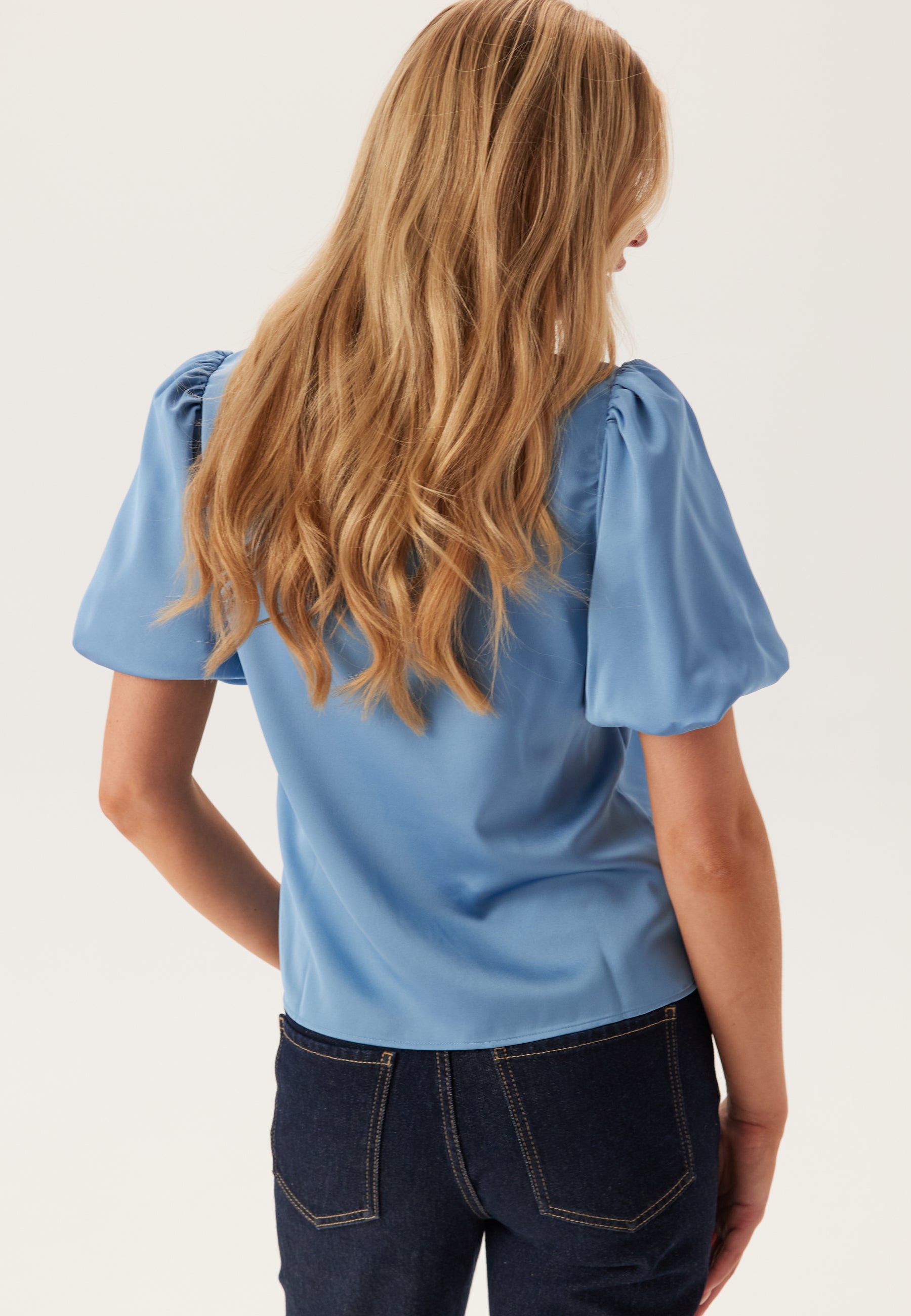 - Puffermer med gummistrikk på enden av ermene.