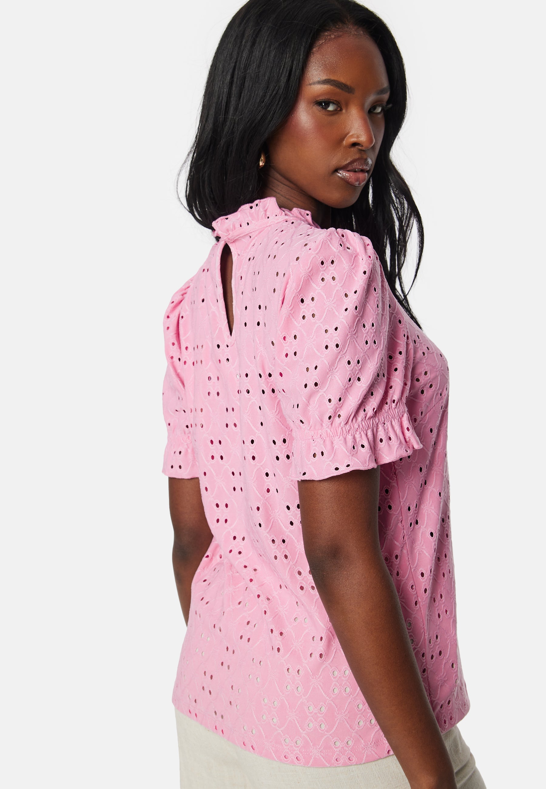 Kortermet topp fra VILA med hullbroderi.